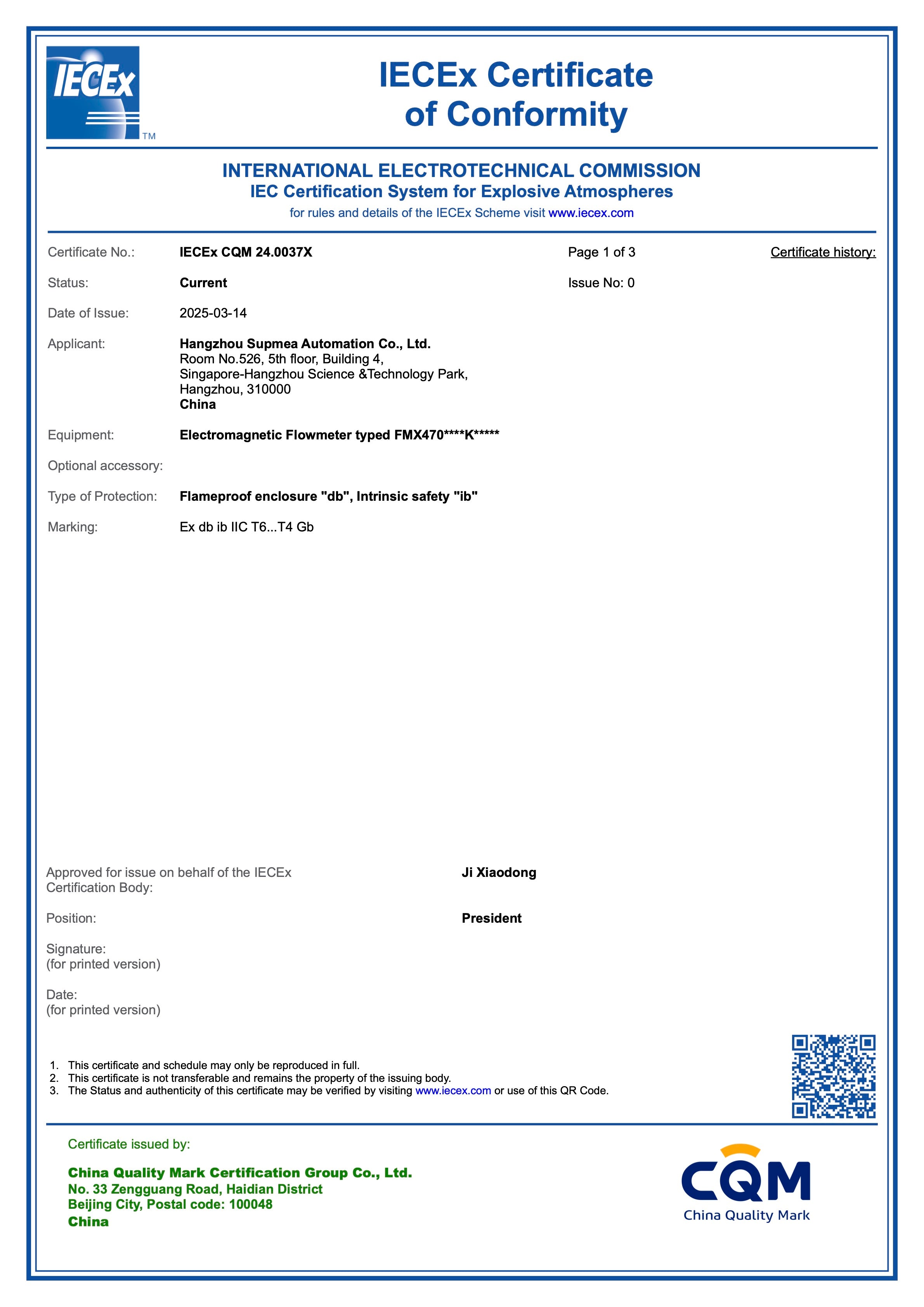 IECEx certificate – electromagnetic flowmeter