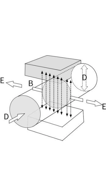 Mag meter works based on Faraday's law, when the liquid goes through the pipe at the flow rate of v with a diameter D, within which a magnetic flux density of B is created by an exciting coil, the following electromotive E is generated in proportion to flow speed v: